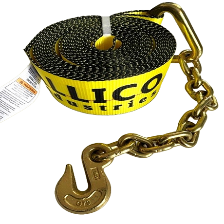 4" X 30' Winch Strap with G-70 5/8" Chain tail and Grab Hook