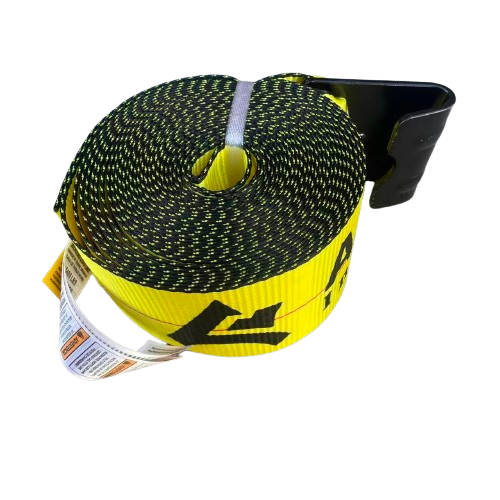 Secure your cargo with Allico Industries 4" winch strap with Flat hook. Made with treated polyester webbing, this winch strap has plenty of strength and durability to be used confidently for daily flatbed operations. With a longer fold over where the Flat Hook is attached, more stitching and a tighter weave creating excellent resistance against abrasion, and easier to use in freezing harsh weather conditions. Strong steel Flat Hook as end hardware, attach the strap to anywhere on the rub rail or side rail and securely winch down your load confidently. WLL and company identification printed every 30”, the inspectors in the scale booth love this no need to search or guess the WLL. DOT and CVSE also like the easily identifiable strap complete with Tri-Language warning labels En, Fr, & ESP, this strap has it all! Meets or exceed all North American standards including CVSA, DOT, CHP and WSTDA. Never exceed working load limit.