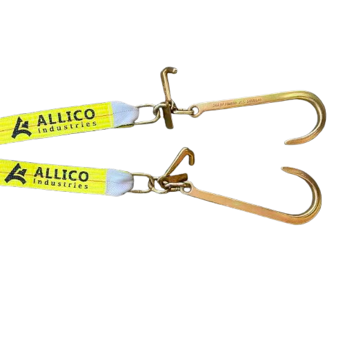 V-STRAP WITH 15" J-HOOK WITH MINI J HOOK, 3-Ply 3" X 24” LEGS WITH METAL WORK LOAD TAG. Not for overhead lifting. Never Exceed Work Load Limit.