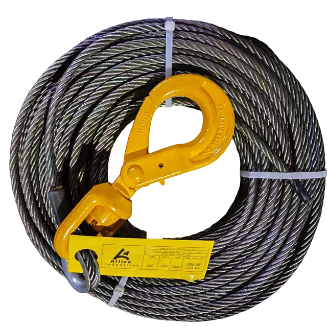 7/16" X 150' Fiber Core Wire Winch Rope W/ Alloy Swivel Self Locking Hook.